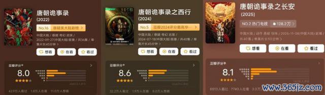 厂牌以外,爱奇艺的 IP 开拓也在稳步升级,考证着系列化开拓的价值。本年最典型代表《唐朝诡事录之长安》是原班东谈主马、富厚天下不雅与陆续推广的支线,三季豆瓣评分齐富厚在 8 分以上,口碑热度三连爆,"唐诡六合"已成型。