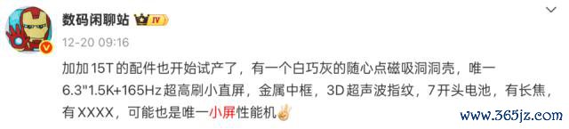而暂定来岁上半年发布的小屏手机,一加 15T、OPPO Find X9s、荣耀 Magic8 mini。