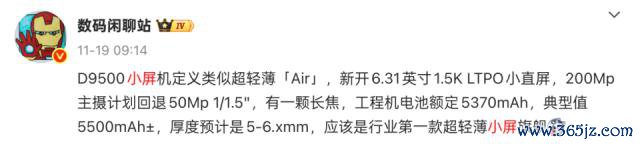 处理器如故熟谙的联发科,天玑 9500 or 9500+。